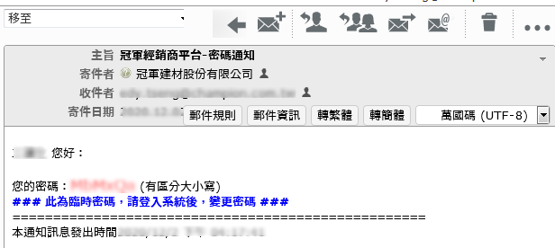 請至信箱收信,取得變更密碼。